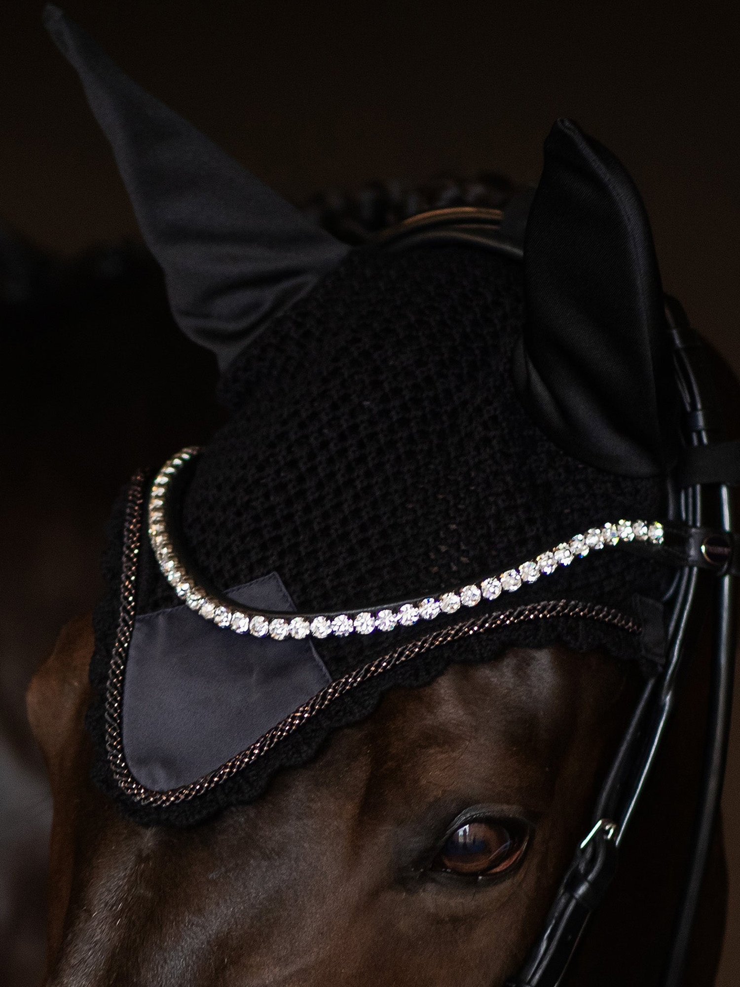 • Whether you're training, competing, or going on a trail ride, this bonnet keeps your horse focused and comfortable.